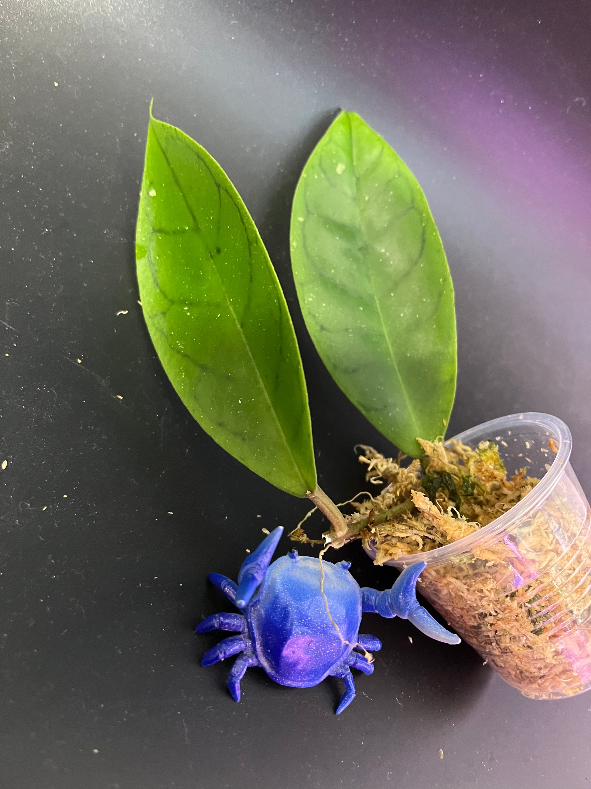 Hoya cv Tim is an Aleya Hoya cultivar that resembles Callistophylla and finlaysonii with its unique leaf pattern.