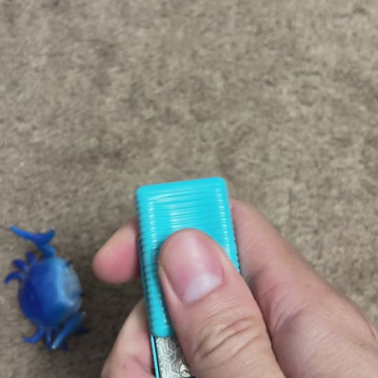 The Soap Bar infinity slider is a magnetic fidget gadget for adults. The blue coloured outer surfaces have a tactile grooved finish and contoured shape for an easier grip. The two layers of this solidly made EDC toy have strong magnets inset on the inside, set under patterned steel metal plates, that attract the two halves together. The two halves are not connected by anything but their magnetic attraction, allowing unlimited movement. The positioning of the magnets allows the sides to be moved in all direction. The profiled and grooved surface lines make these easy to grip for satisfying one handed fidgeting. Medium to strong resistance, not too loud with a good positive movement and nice haptic feedback. The magnets will snap together with some force and it is possible to trap your skin (be careful!). These are fidget toys for Adults.
